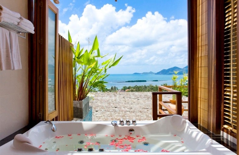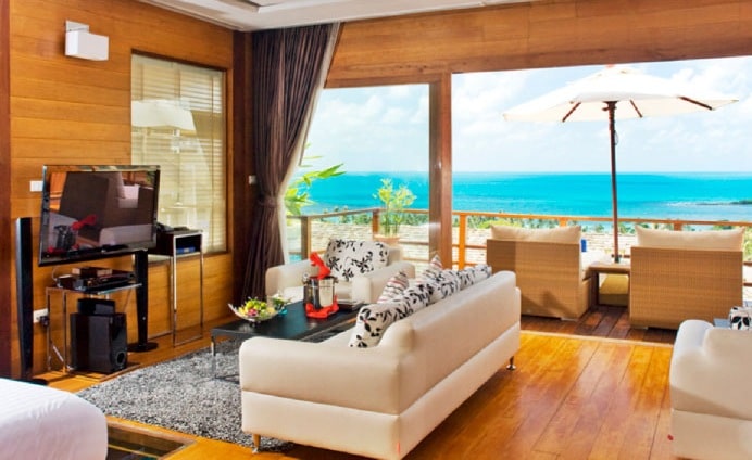 Luxury villas with aromatherapy baths, teak parquet with sea views. Each villa has a swimming pool with an infinity pool effect and a stunning sea panorama. The villa is designed with an emphasis on the use of natural materials: teak and cedar.